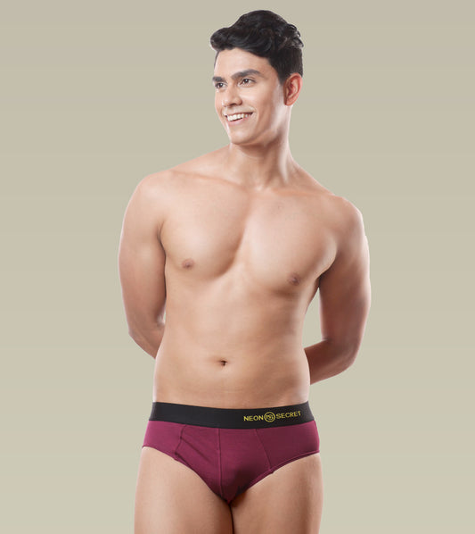Men's Breathable Briefs- Pack of 3 (Midnight Black, Claret, Spear Mint)