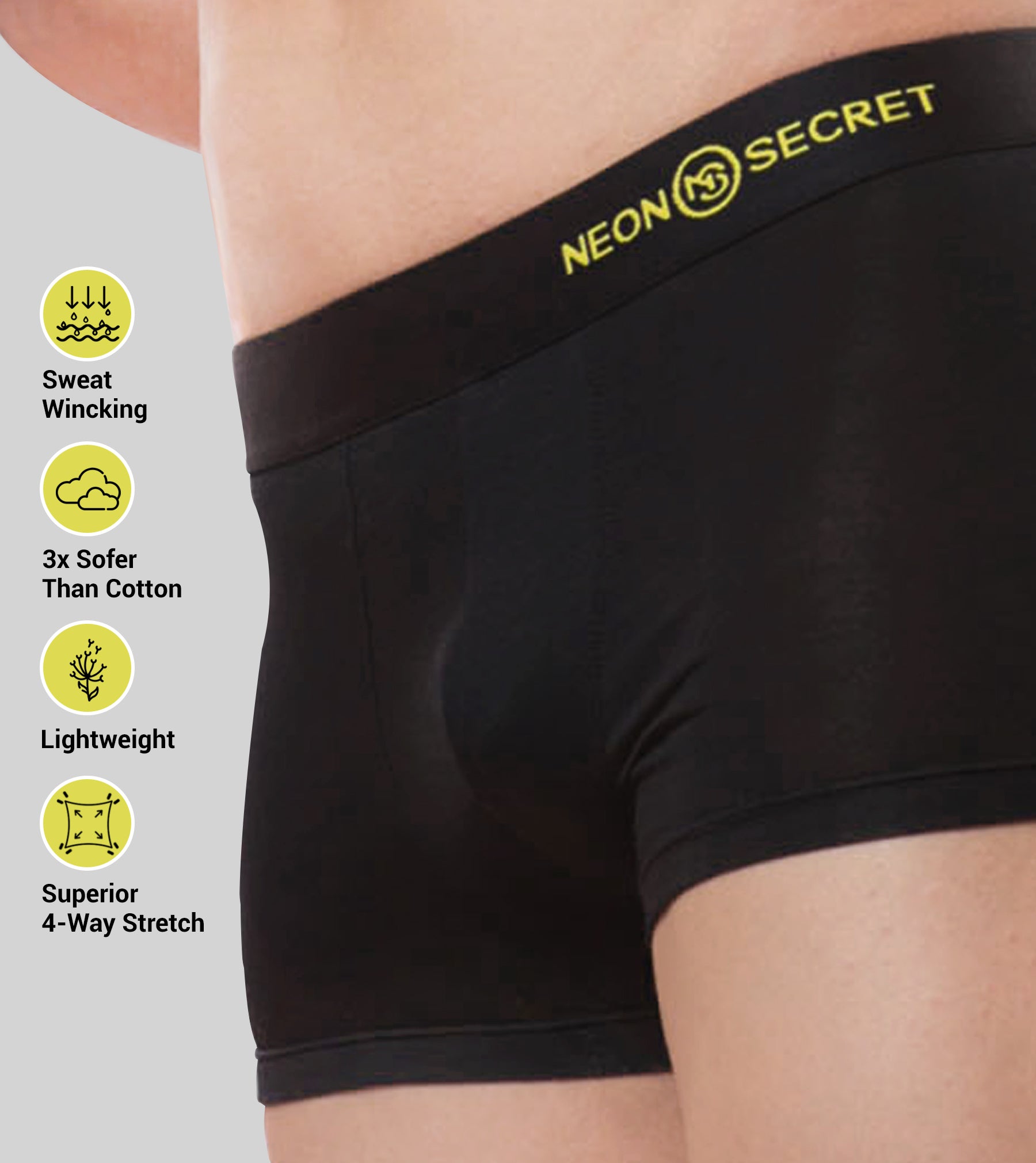 Our Men's Micro Modal Men's Black Trunk from our brand offers all-day comfort, does not require modifications, and keeps your belongings off your legs. They are produced using only organic, biodegradable components. To keep your undercarriage in check all day, fabric has superior moisture wicking and breathability to synthetic materials.